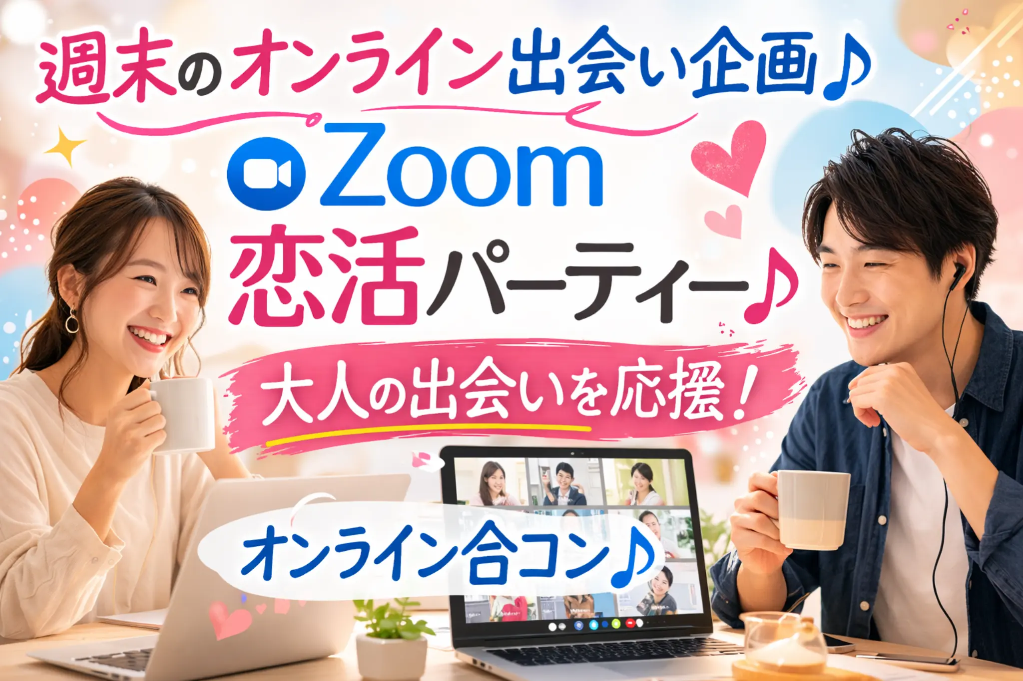 ⭐週末に気軽な出会いを楽しみたい方におすすめ♪大人世代のオンライン恋活企画です⭐♡Zoomを使ってご自宅から参加できる、40代中心のオンライン合コン開催♡