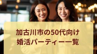 婚活パーティー・街コン・出会いイベントの開催情報やおすすめサービスに関する記事 加古川市の50代(アラフィフ)向けの婚活パーティー・街コン一覧