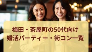 婚活パーティー・街コン・出会いイベントの開催情報やおすすめサービスに関する記事 梅田・茶屋町の50代(アラフィフ)向けの婚活パーティー・街コン一覧