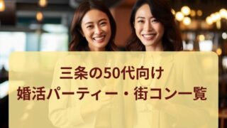 婚活パーティー・街コン・出会いイベントの開催情報やおすすめサービスに関する記事 三条の50代(アラフィフ)向けの婚活パーティー・街コン一覧