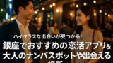 また、銀座の男女におすすめの出会いの方法や、銀座の人におすすめのマッチングアプリ特集・銀座でおすすめする結婚相談所・オンライン結婚相談所 をまとめていますので合わせてご覧くださいませ。