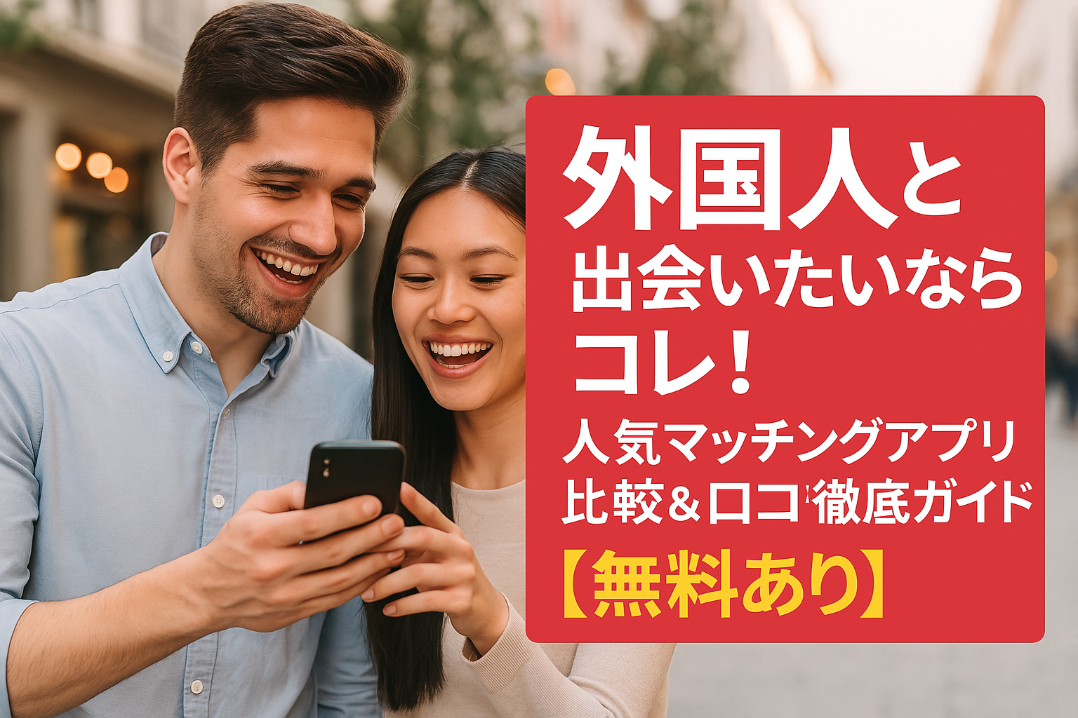 海外の文化や価値観に触れたい、語学を活かして恋愛を楽しみたい――そんな想いから「外国人と出会いたい」と考える方が年々増えています。けれども、どのマッチングアプリが外国人との出会いに向いているのか分からず、迷ってしまう方も多いのではないでしょうか?本記事では、外国人との出会いに強い人気アプリを厳選し、目的別・料金別に徹底比較。実際の口コミや体験談も交えながら、無料で始められるおすすめアプリや安全に出会うコツまで丁寧に解説します。